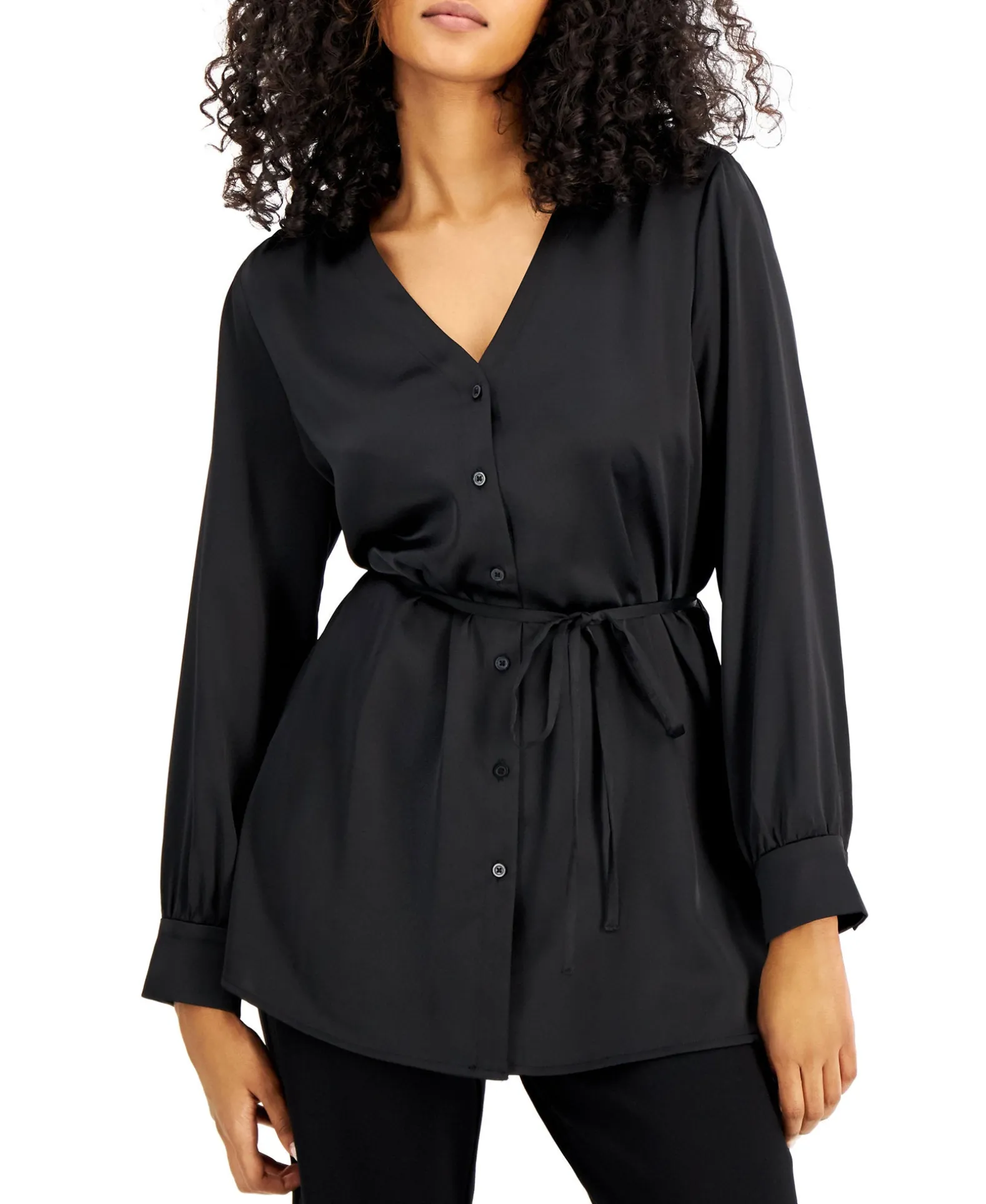 Add This Longer-Length Top From Alfani To Your Wardrobe For Chic Style. Featured With A Tie At The Waist For Definition.