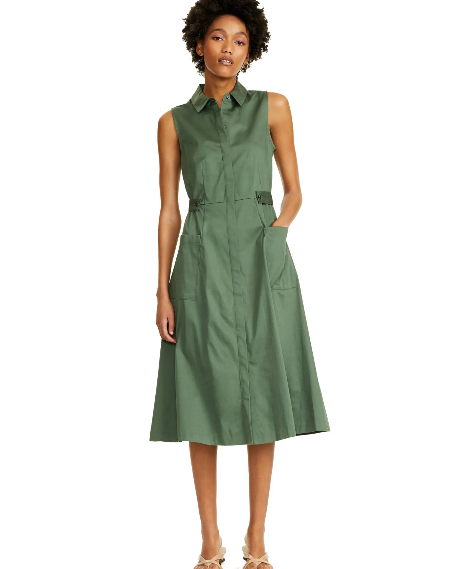 - Point collar; Fit & flare silhouette