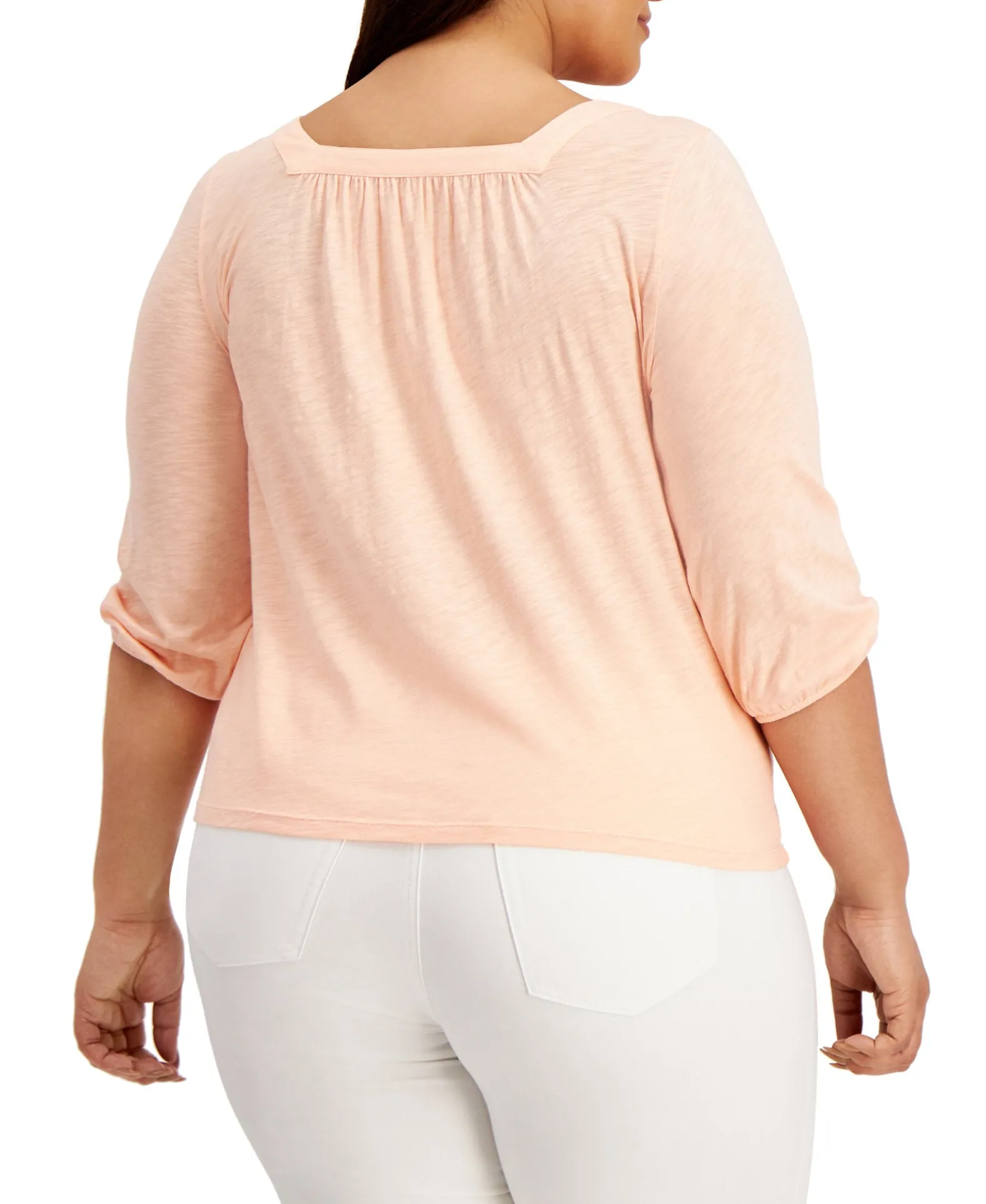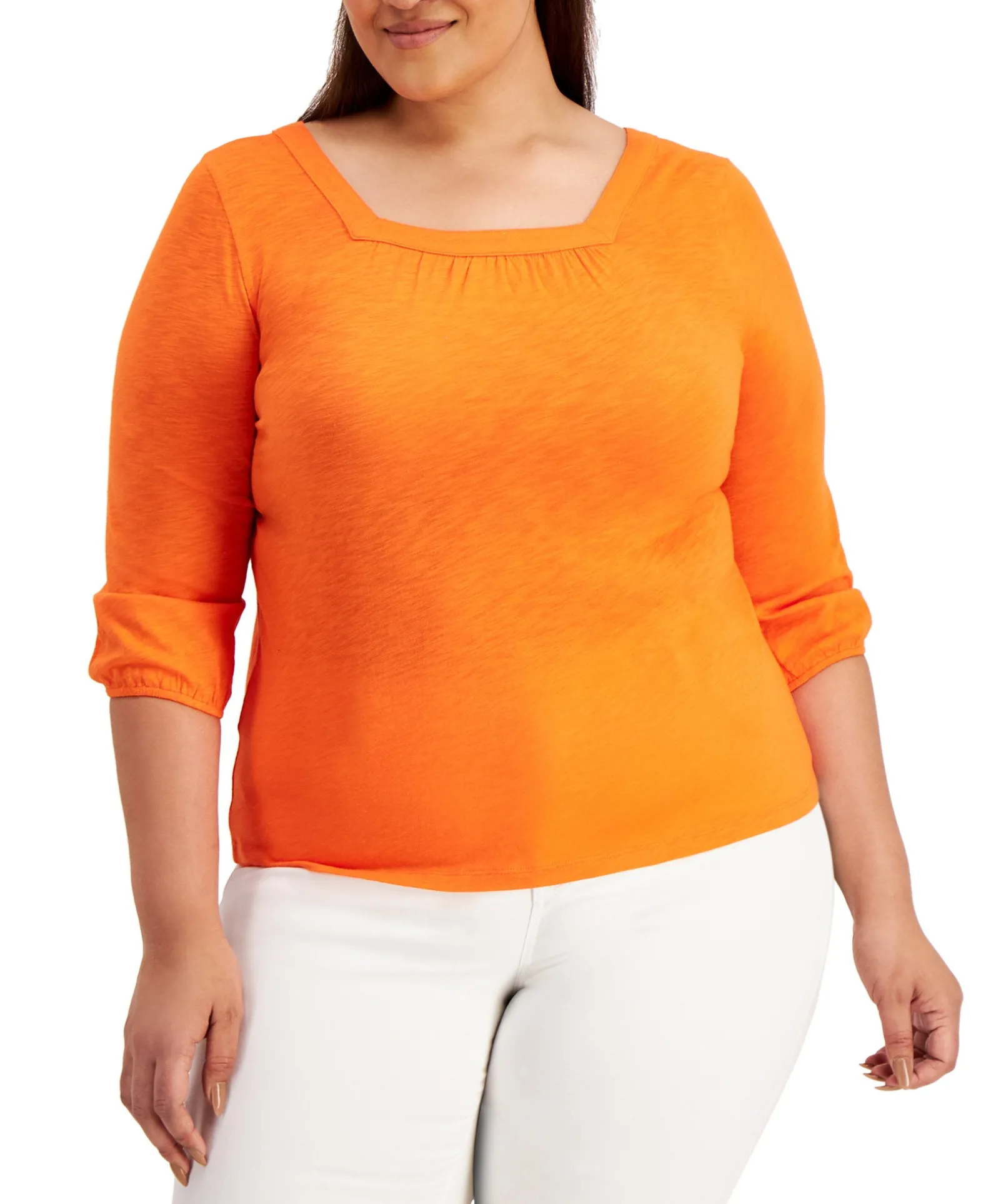 Style & Co Updates The Timeless 3/4-Sleeve Top With This Plus Size Pick, Accented By A Square Neckline That Elevates The Look.