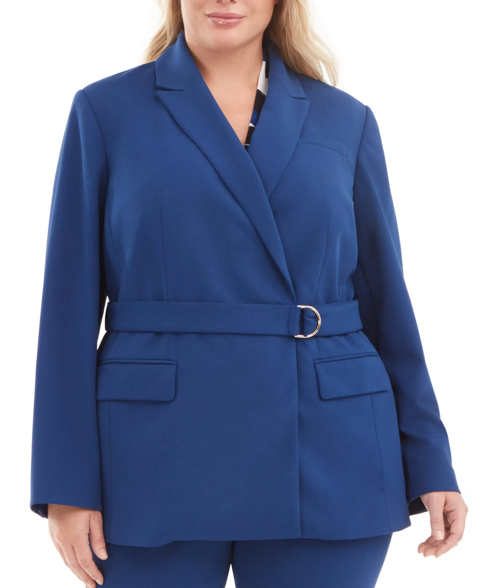 The Perfect Finish For Your Professional Look Is Here With An Adjustable D-Ring Belt On This Calvin Klein Plus Size Blazer. It Keeps Things Neat And Flatters Your Figure Every Time.
