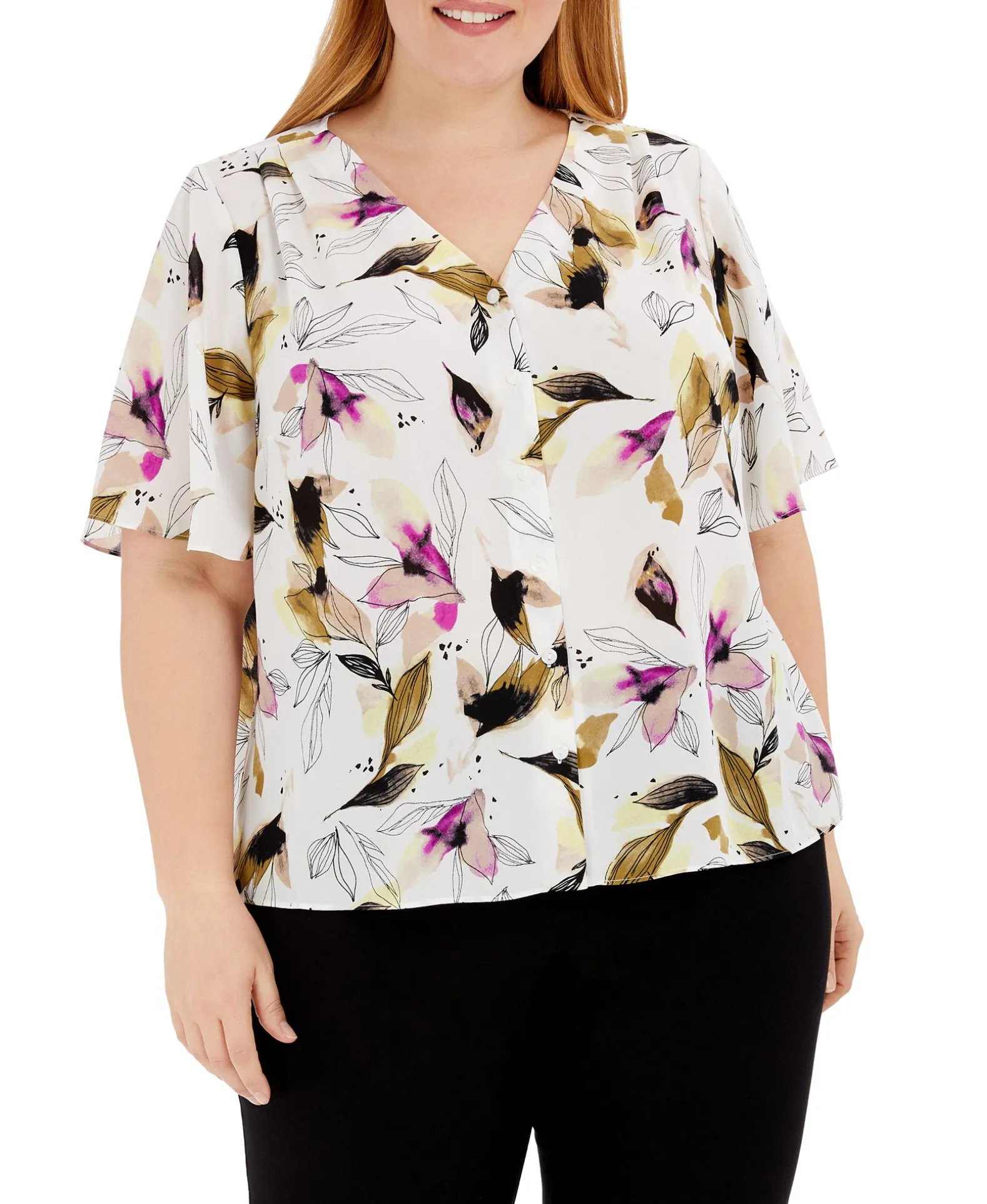 Fun Flutter Sleeves Add A Lovely Feel To Alfani’s Plus Size Top, A Classic V-Neck Design Finished With Front Button Closures For Versatile Styling.