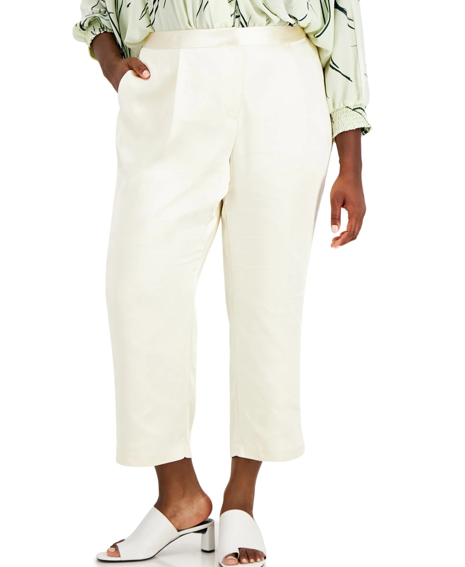 Alfani’s Plus Size Pants Look Elegant But Cool Thanks To A Satin-Trimmed Waistband And A Cropped, Pleated Silhouette.