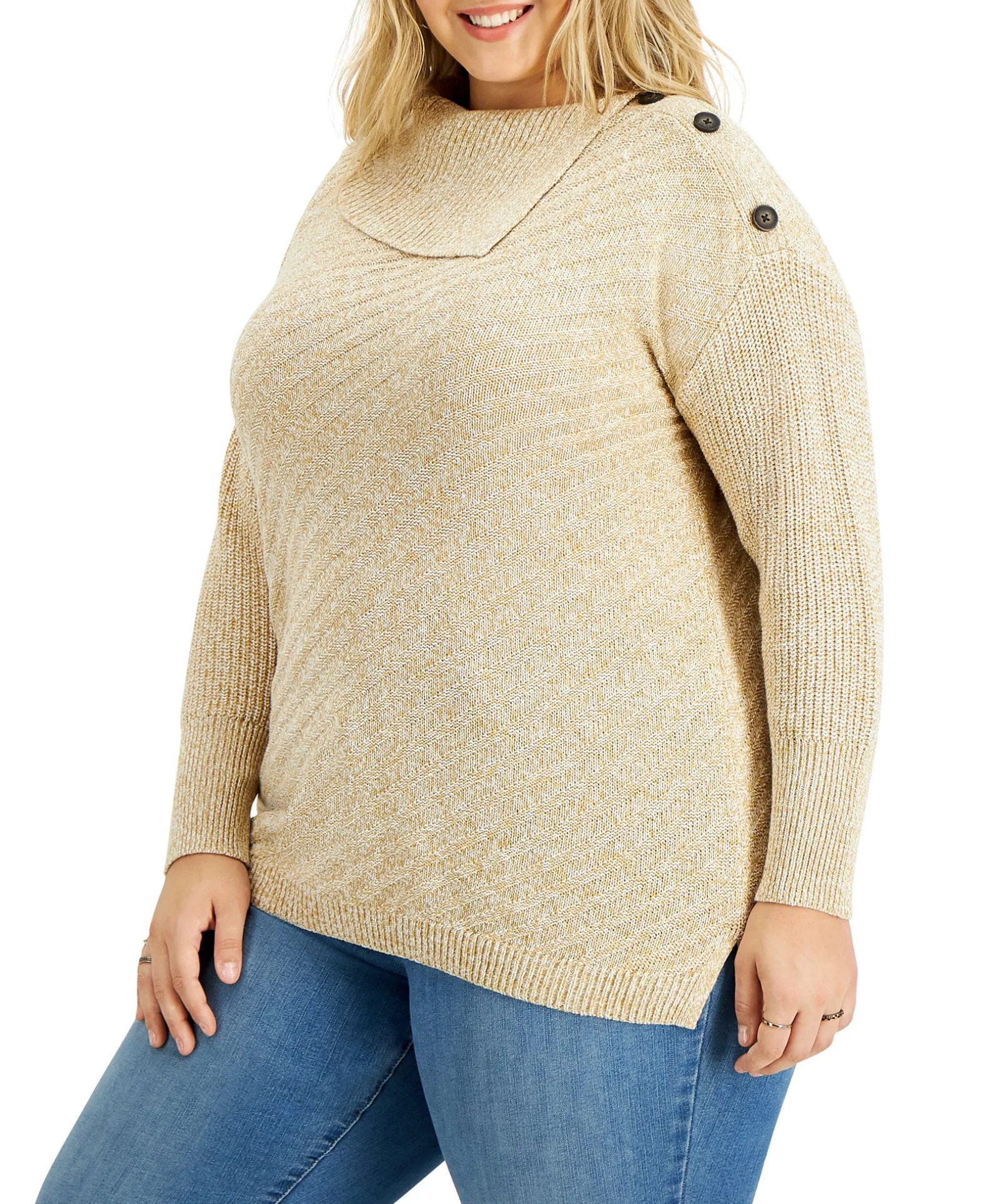 The Effortless Tunic Shape Of This Style & Co Plus Size Sweater Is Updated With A Split Envelope Neckline And Button Trim.