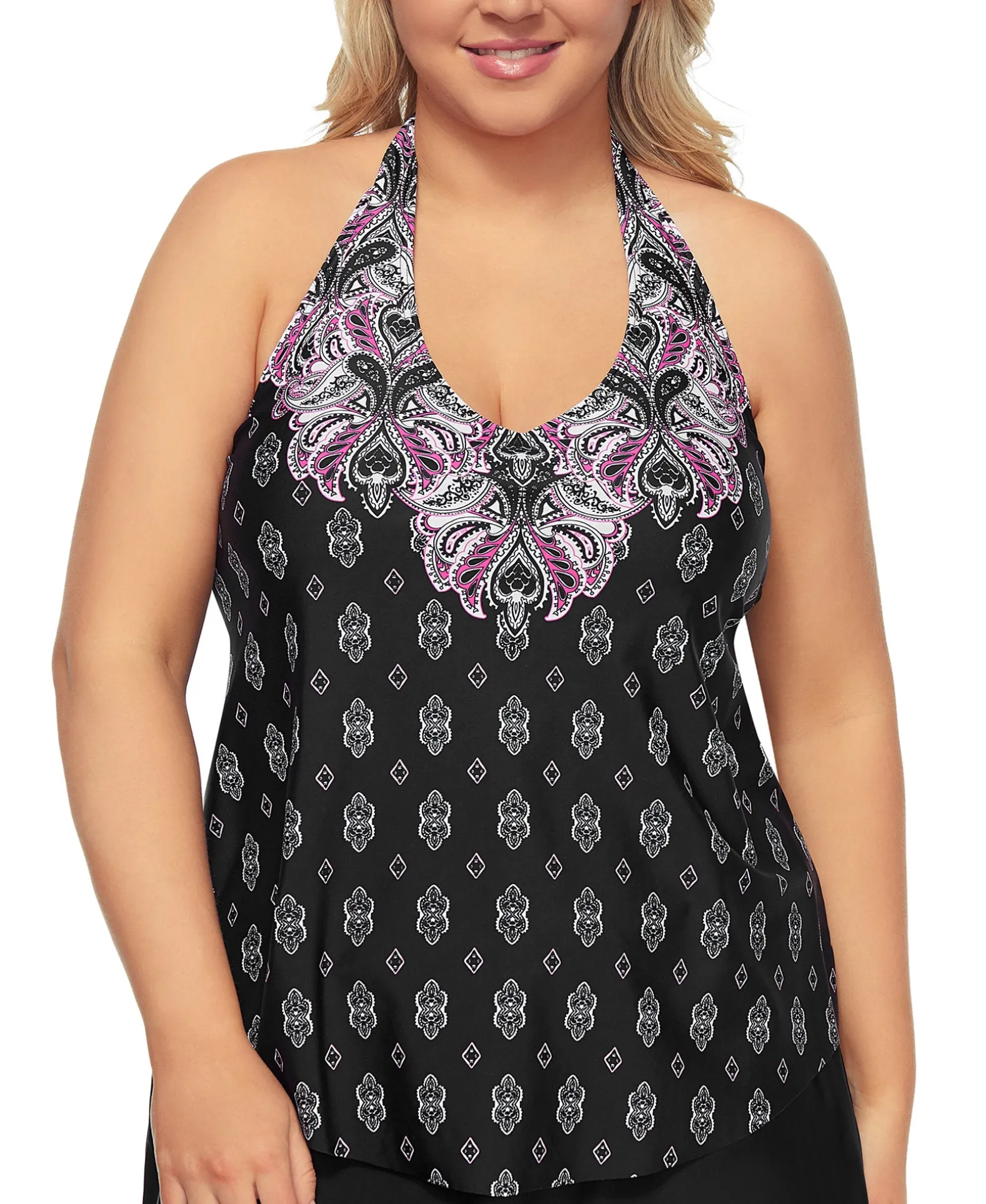 Vibrant Details Accent A Sleek Print, Bringing A Fresh Look To This Plus Size Tankini Top From Island Escape. Underwire Support Enhances Your Shape.