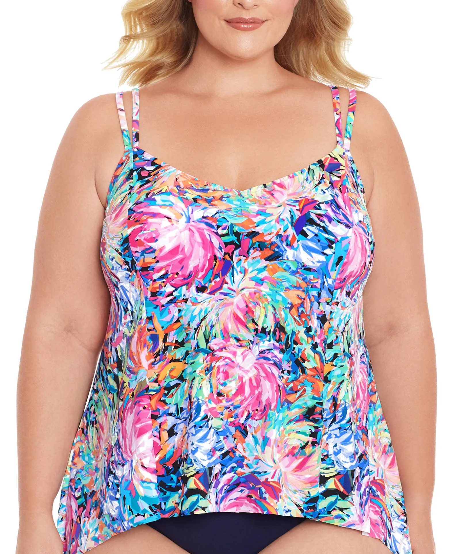 You’ll Look Like A Work Of Art In This Watercolor-Inspired Plus Size Tankini Top From Swim Solutions.