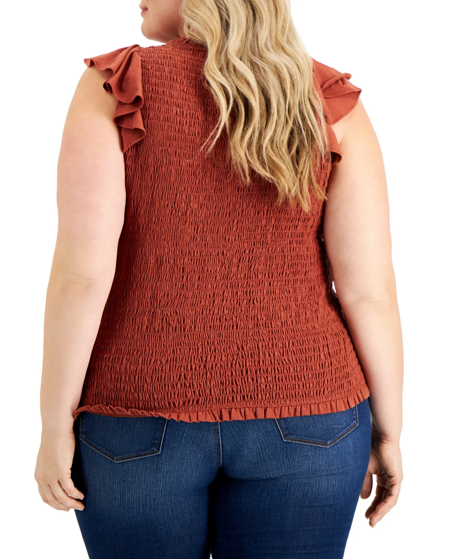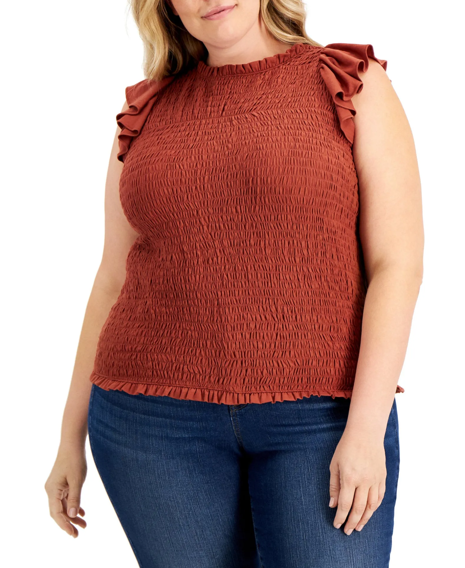 Flowy Ruffles At The Neck, Shoulders And Hem Soften The Smocked Shape Of This Plus Size Top From INC International Concepts®.