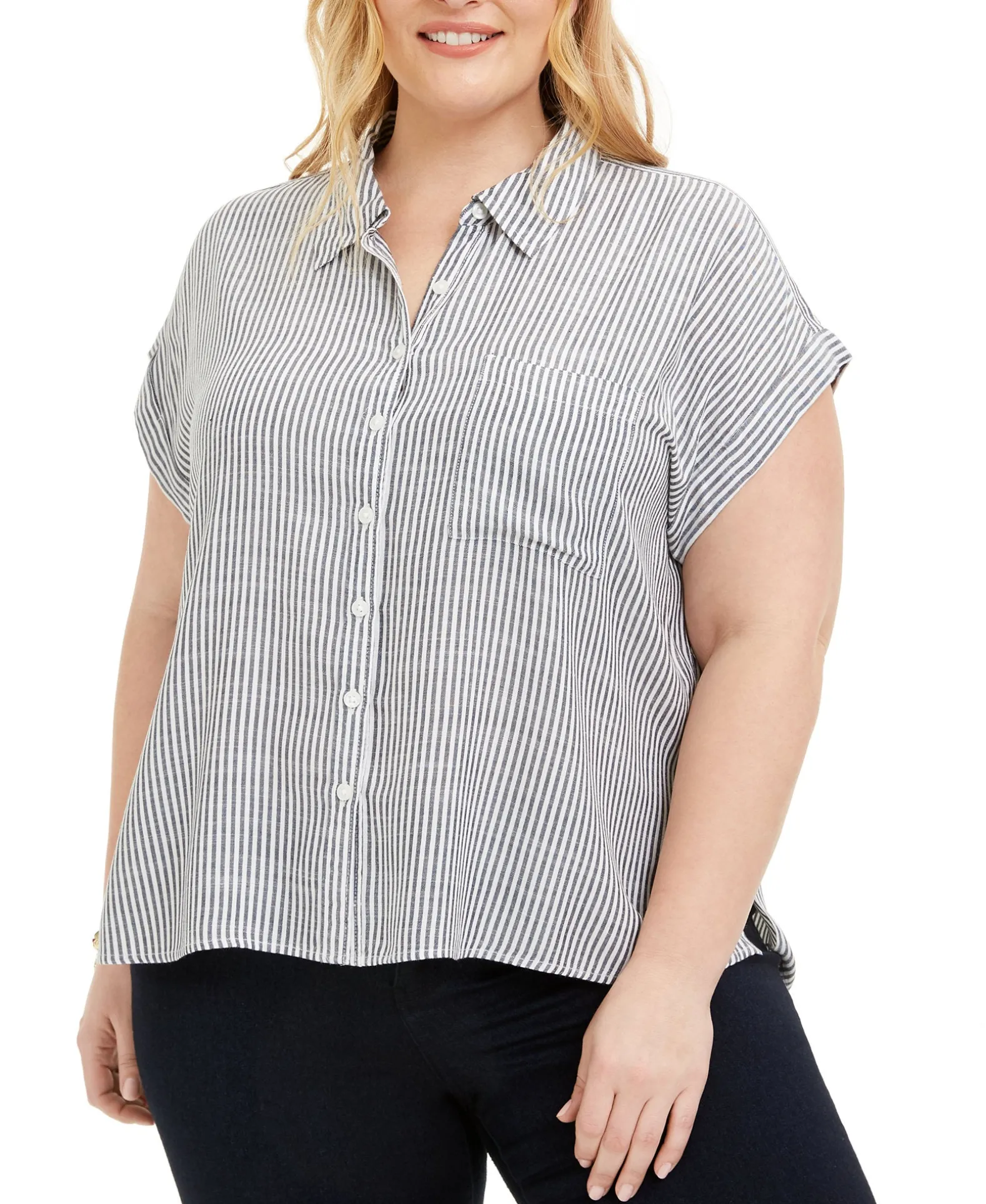 Breeze Through The Season In Cool-Girl Style With This Plus Size Striped Camp Shirt From Style & Co.
