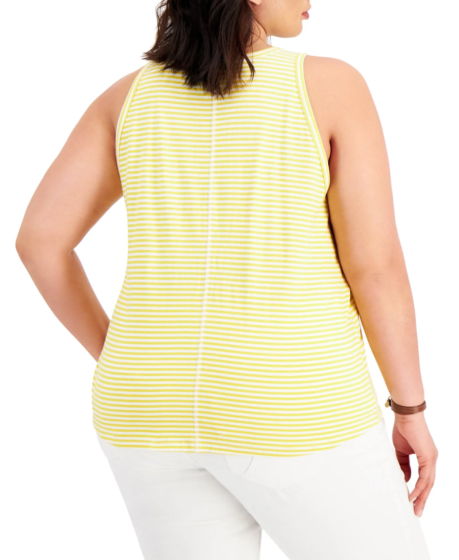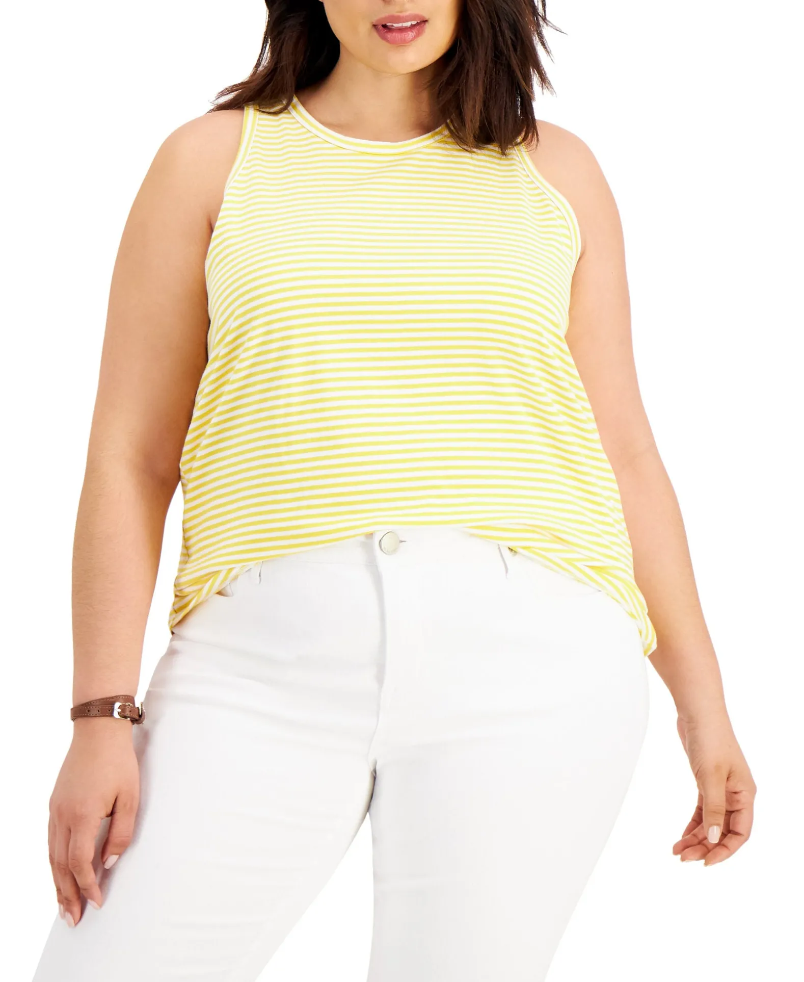 Unwind In Style And Comfort With Style & Co’s Plus Size Striped Cutaway Tank Top.