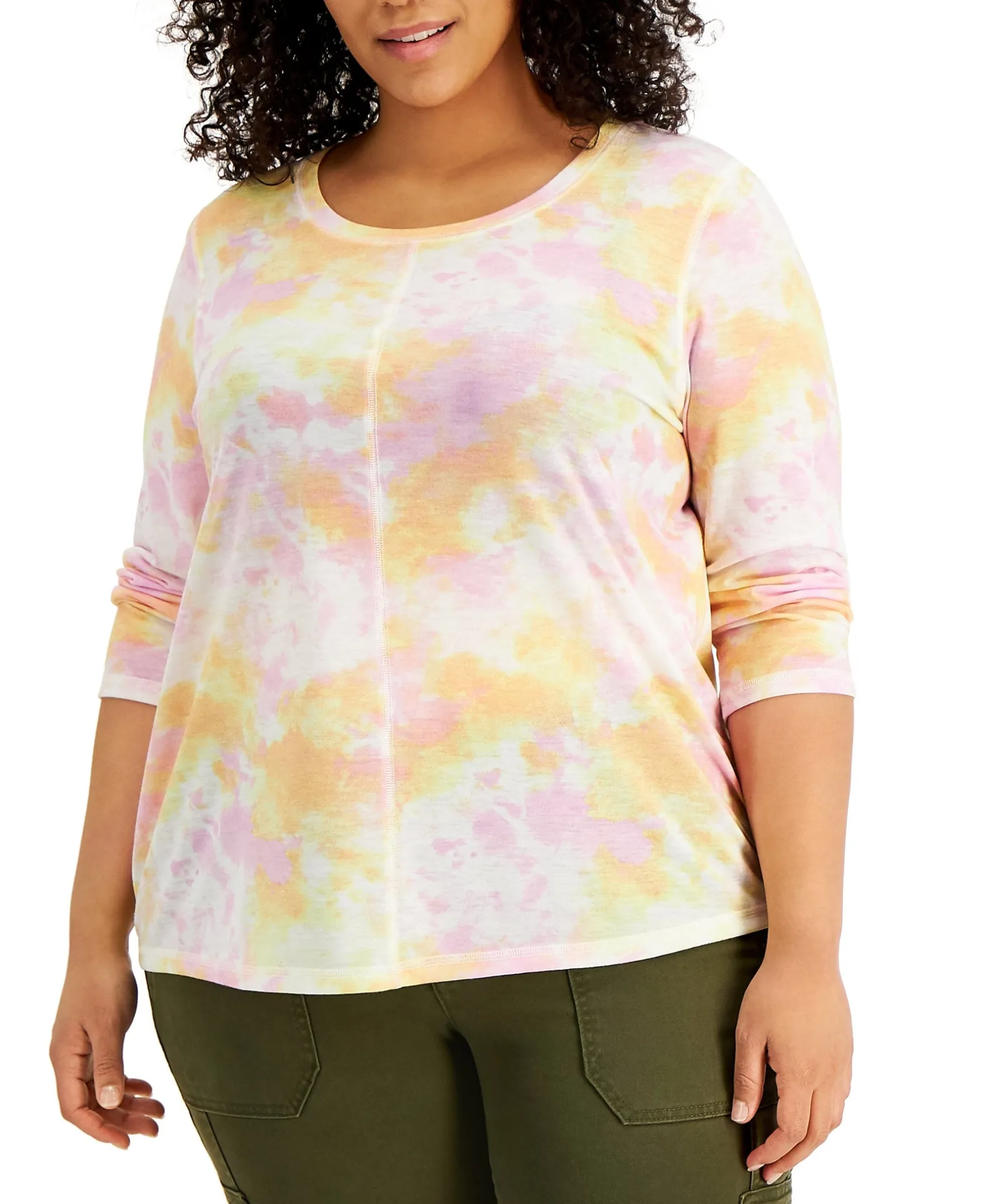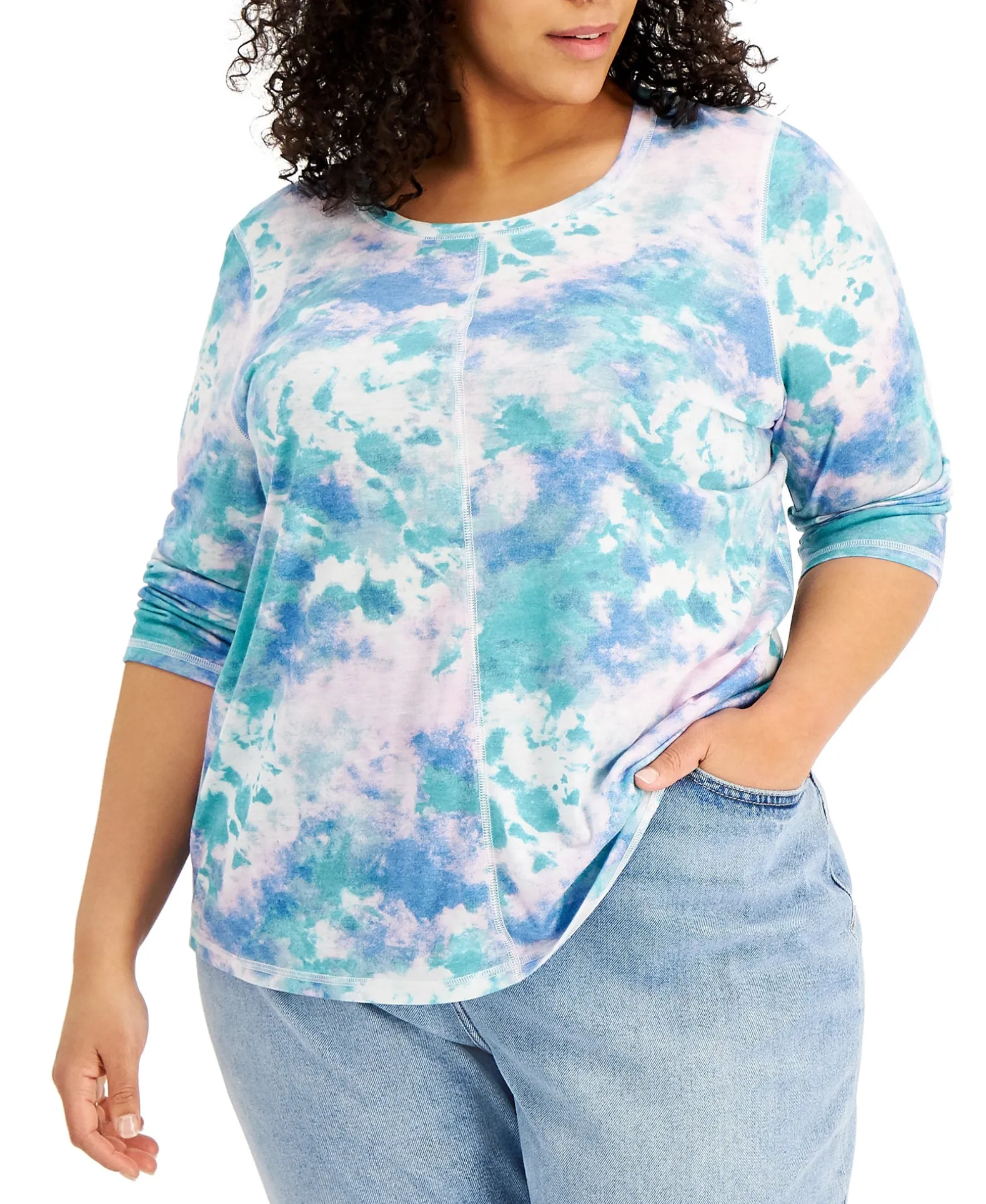 Style & Co Presents Your New Go-To Tee For Cozy Days With This Plus Size Tie-Dyed Top, Featuring 3/4-Sleeves.