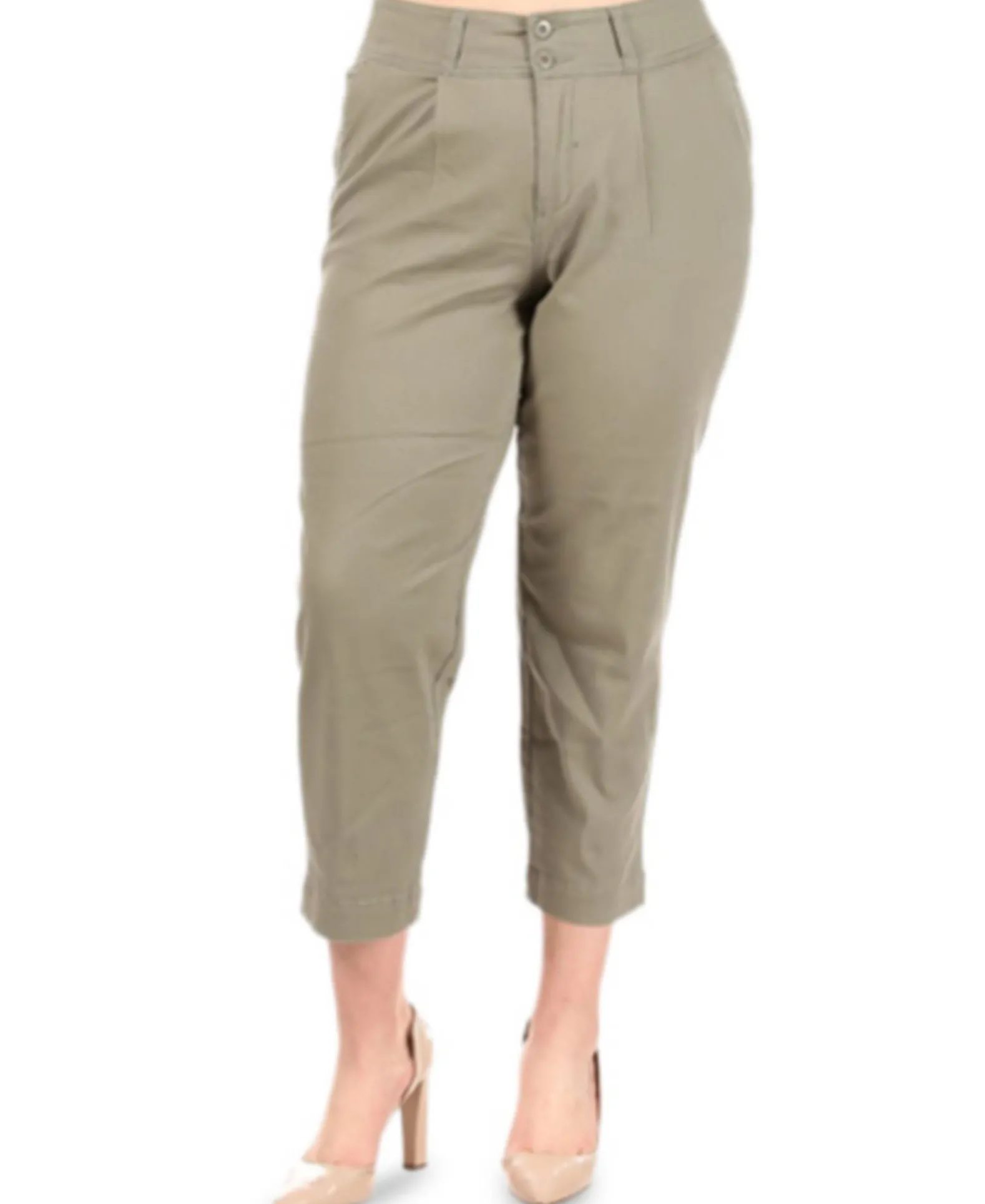 - Zipper and double-button closure at front; belt loops