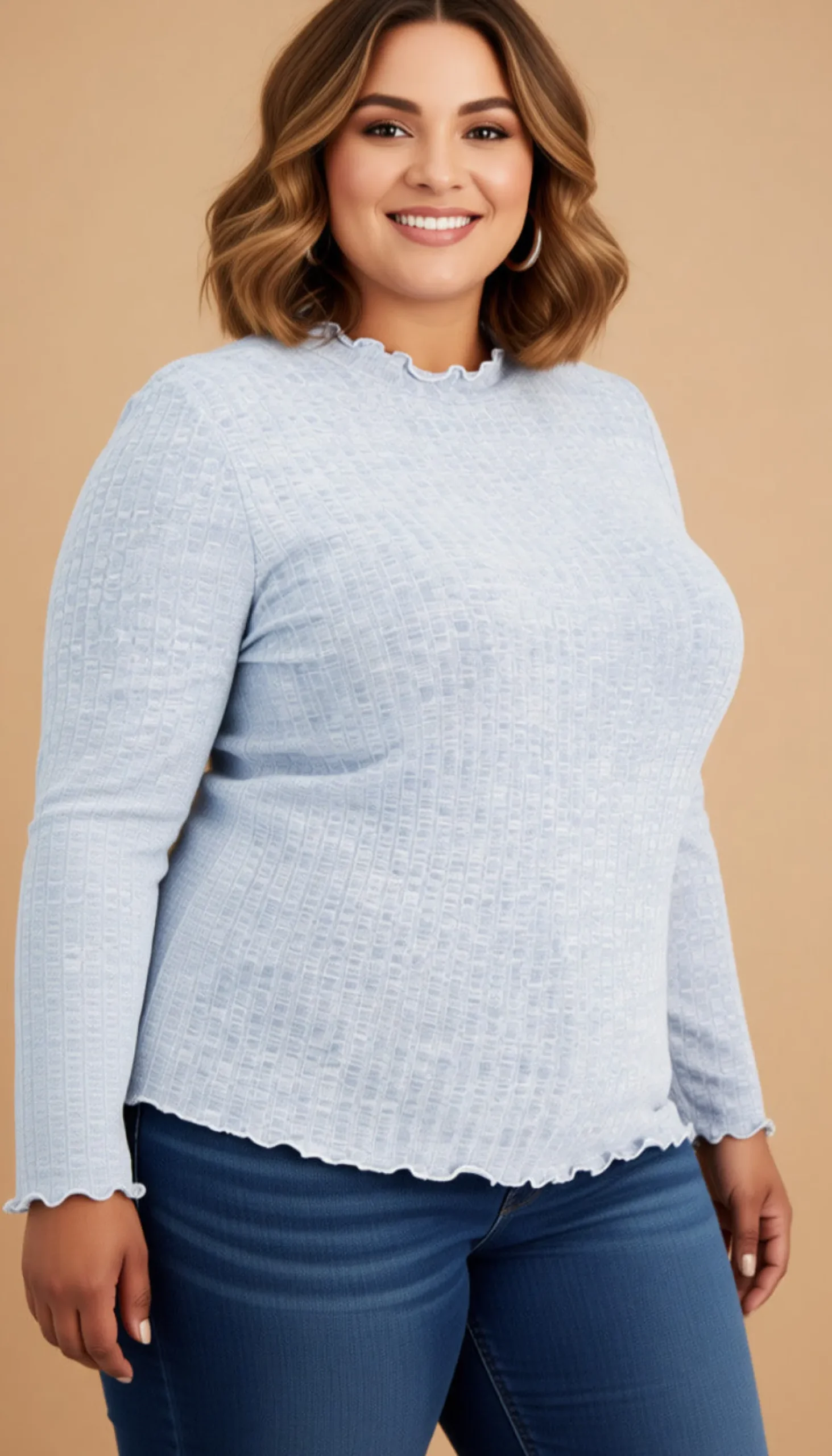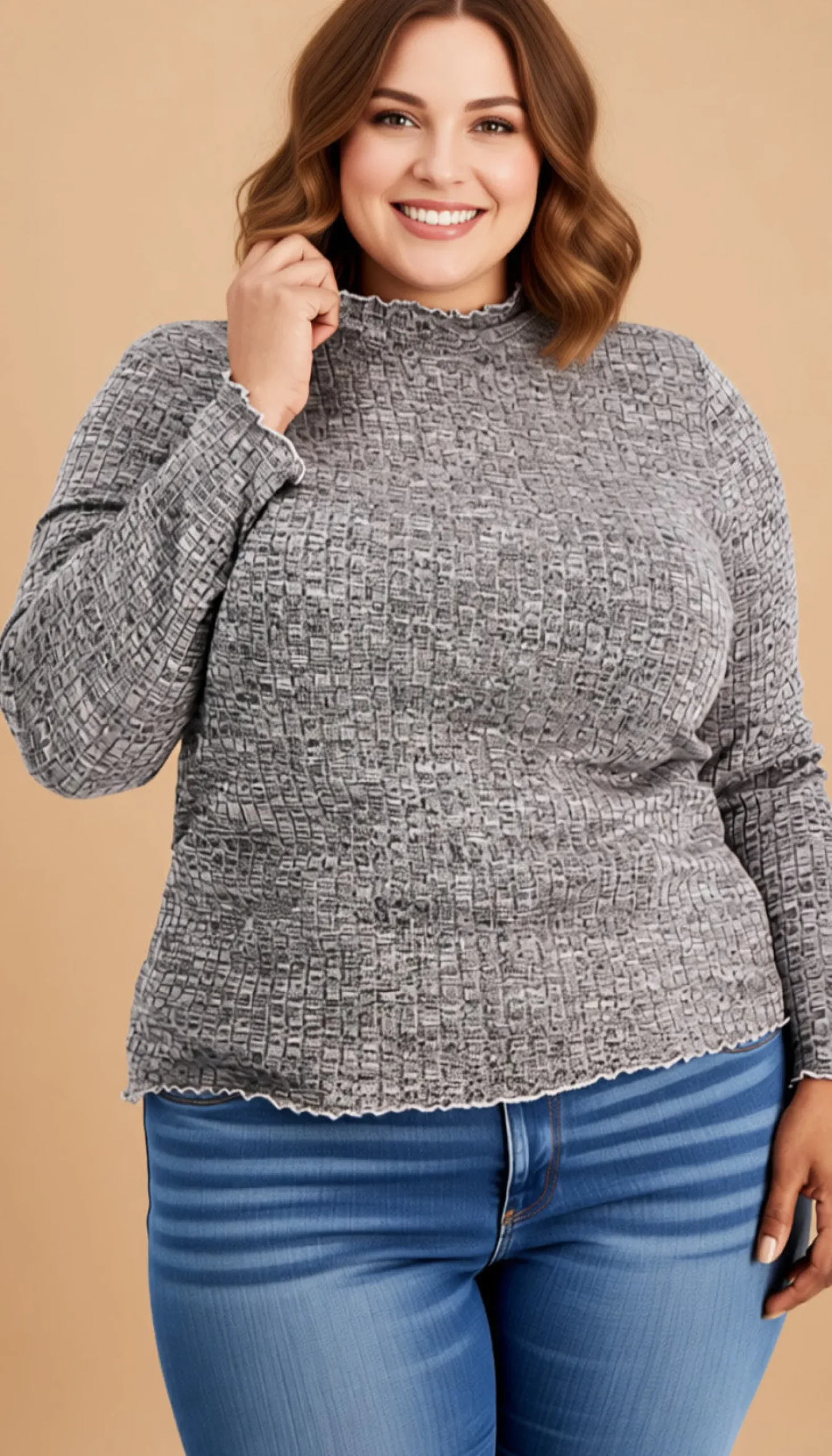 Mix Up Your Style Playlist In This Cozy Plus Size Sweater From Rebellious One Designed With A Turtleneck And Cute Lettuce-Style Edges.