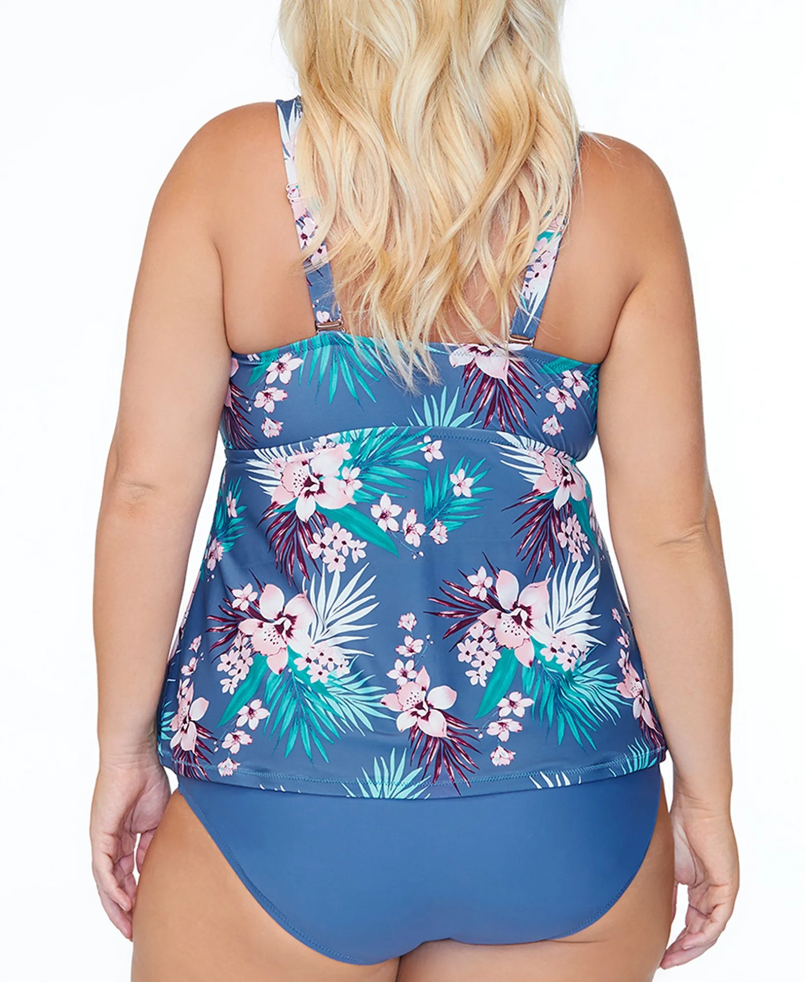 Tropical Flair Gets A Soft Touch In This Plus Size Tankini Top From Raisins Curve, A Chic Piece Punctuated With A Bow Between The Bust.