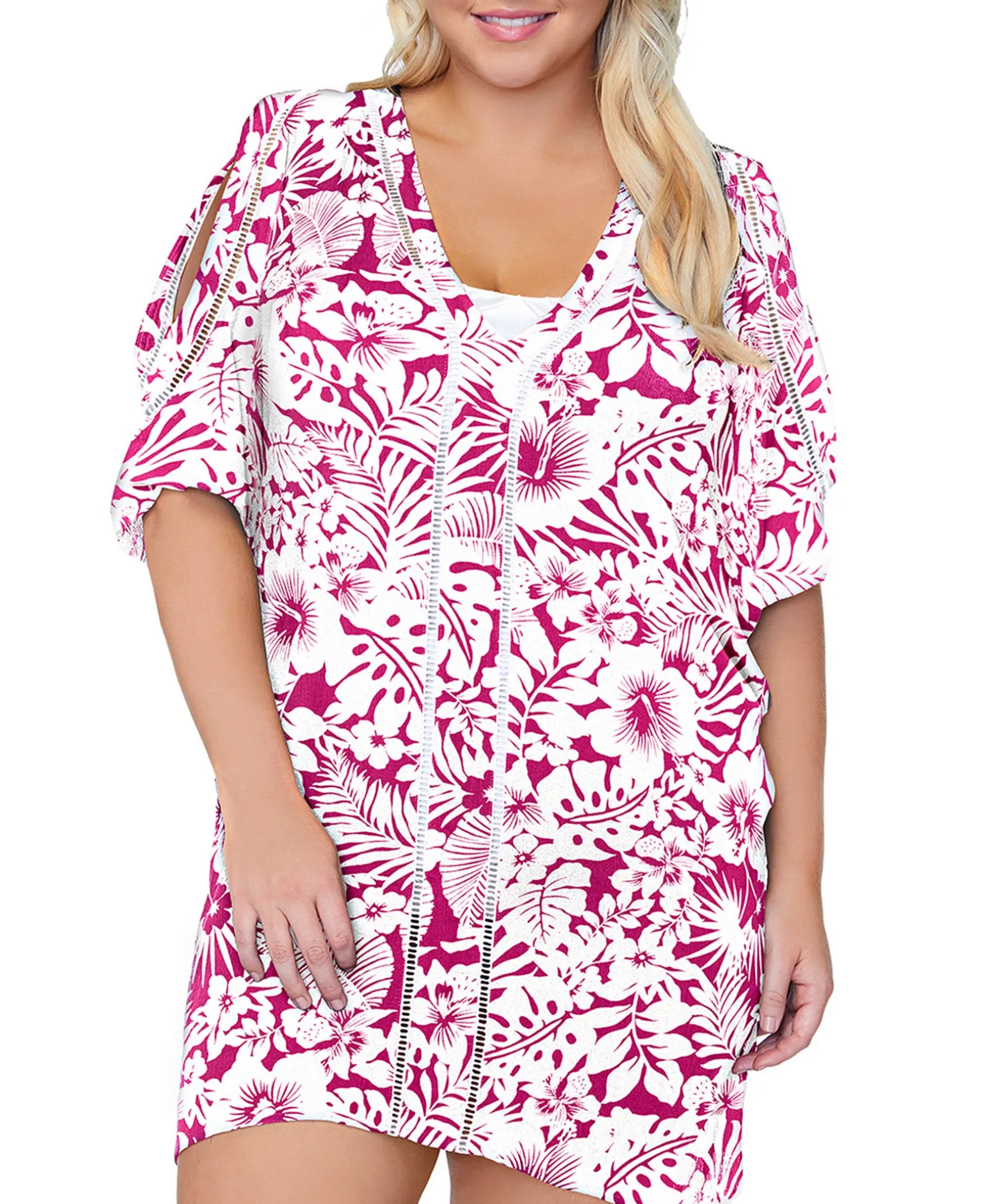 Raisins Curve Hits All The Right Style Marks With This Pretty Plus Size Cover-Up Designed With A Tropical-Inspired Print And Breezy Cold-Shoulder Cutouts.