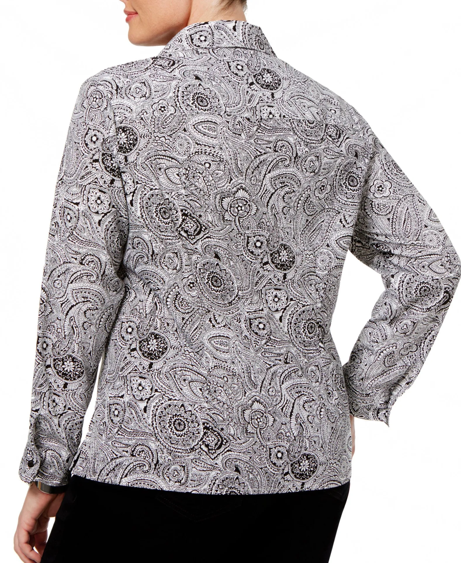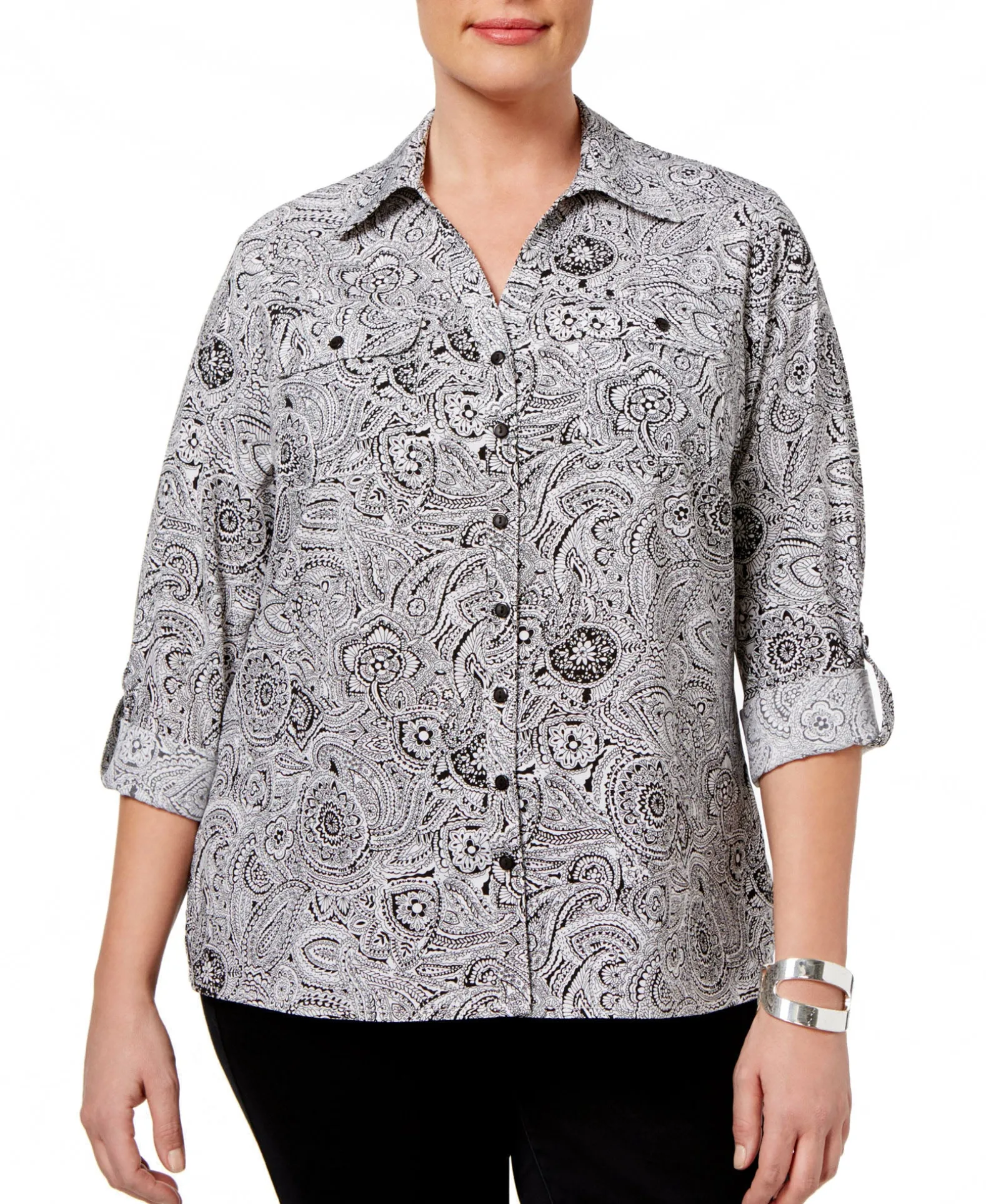 NY Collection’s whimsical plus size blouse is perfect for work or play.