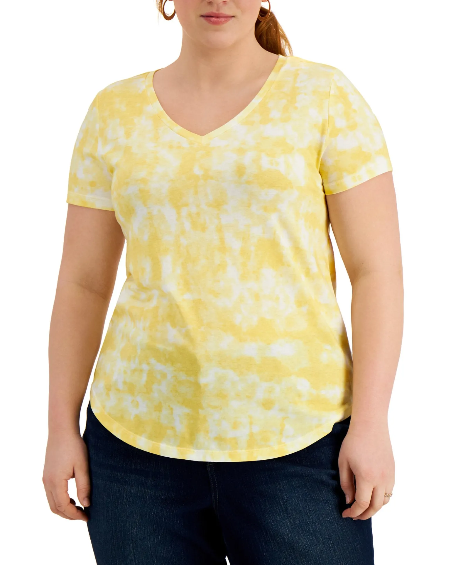 Style & Co’s Staple Plus Size T-Shirt Is Back For The Season With A Cool Burnout Tie-Dyed Knit. A Perfect Upgrade To Your Usual V-Neck.