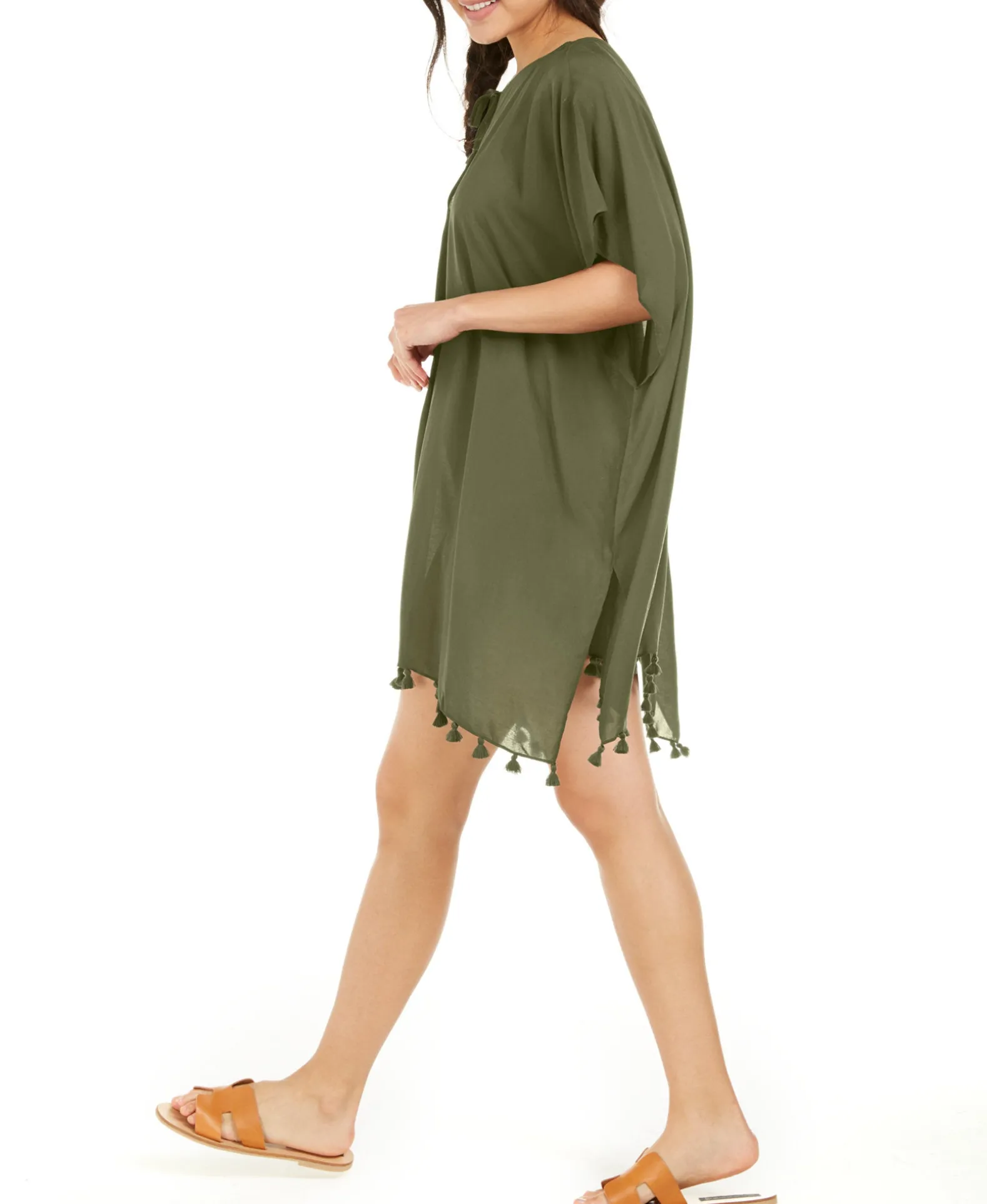 A Little Bit Boho And A Lot Of Fun, This Flowing Cover-Up From DKNY Finishes A Chic Hem With Playful Pom Poms.
