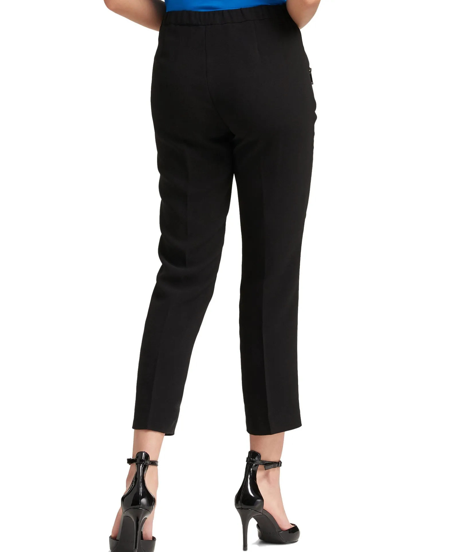 designed with subtly-edgy zip pockets, dkny’s relaxed, pull-on pant crafts a comfortable, stylish feel that effortlessly complements the body.