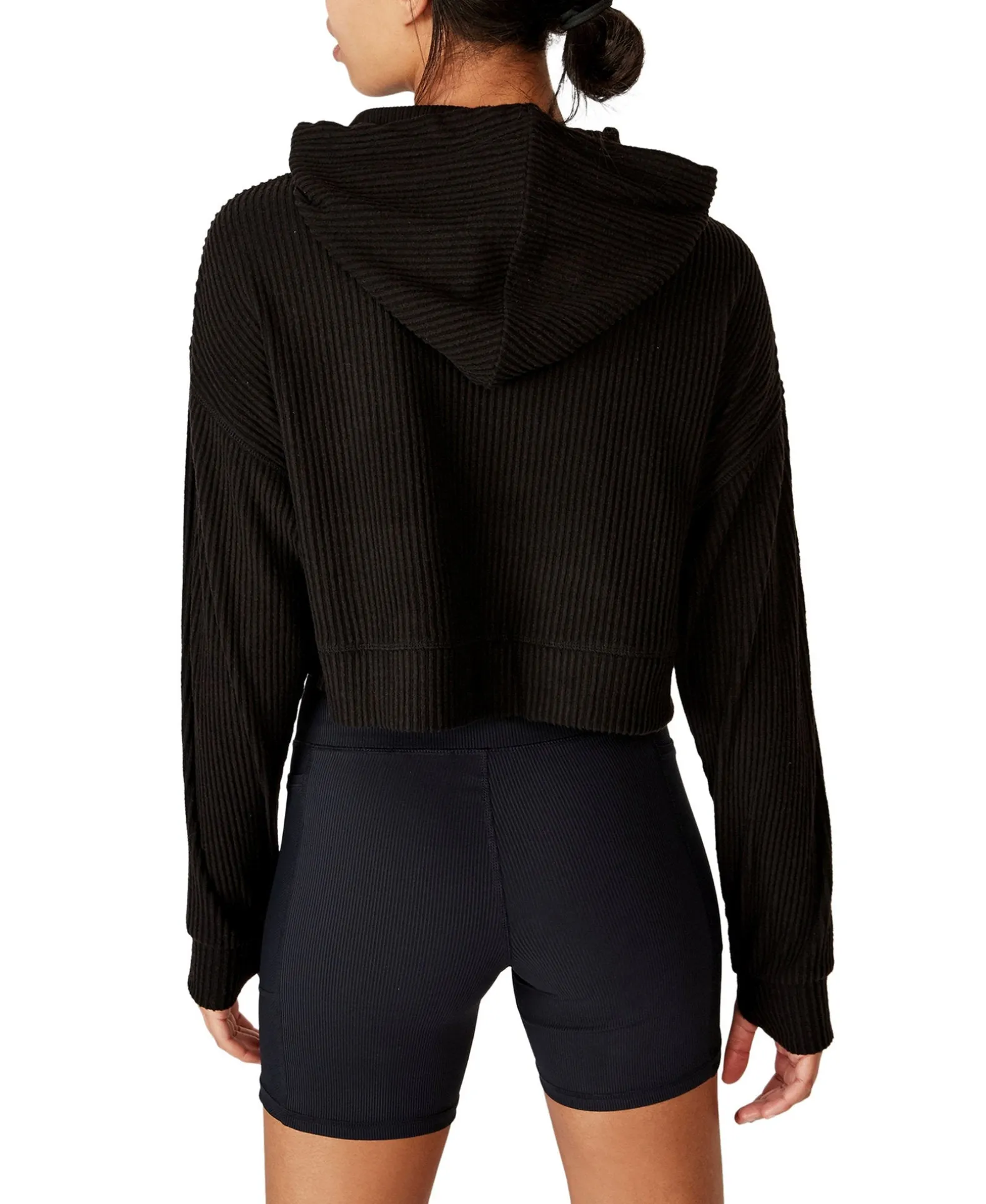 Great For Workouts And Chilling Out, The Rib Cropped Hoodie Is A Hooded, Cropped Sweatshirt In Cozy Ribbed Fabric. Also Features Long, Cuffed Sleeves And A Draw Cord On The Hood.