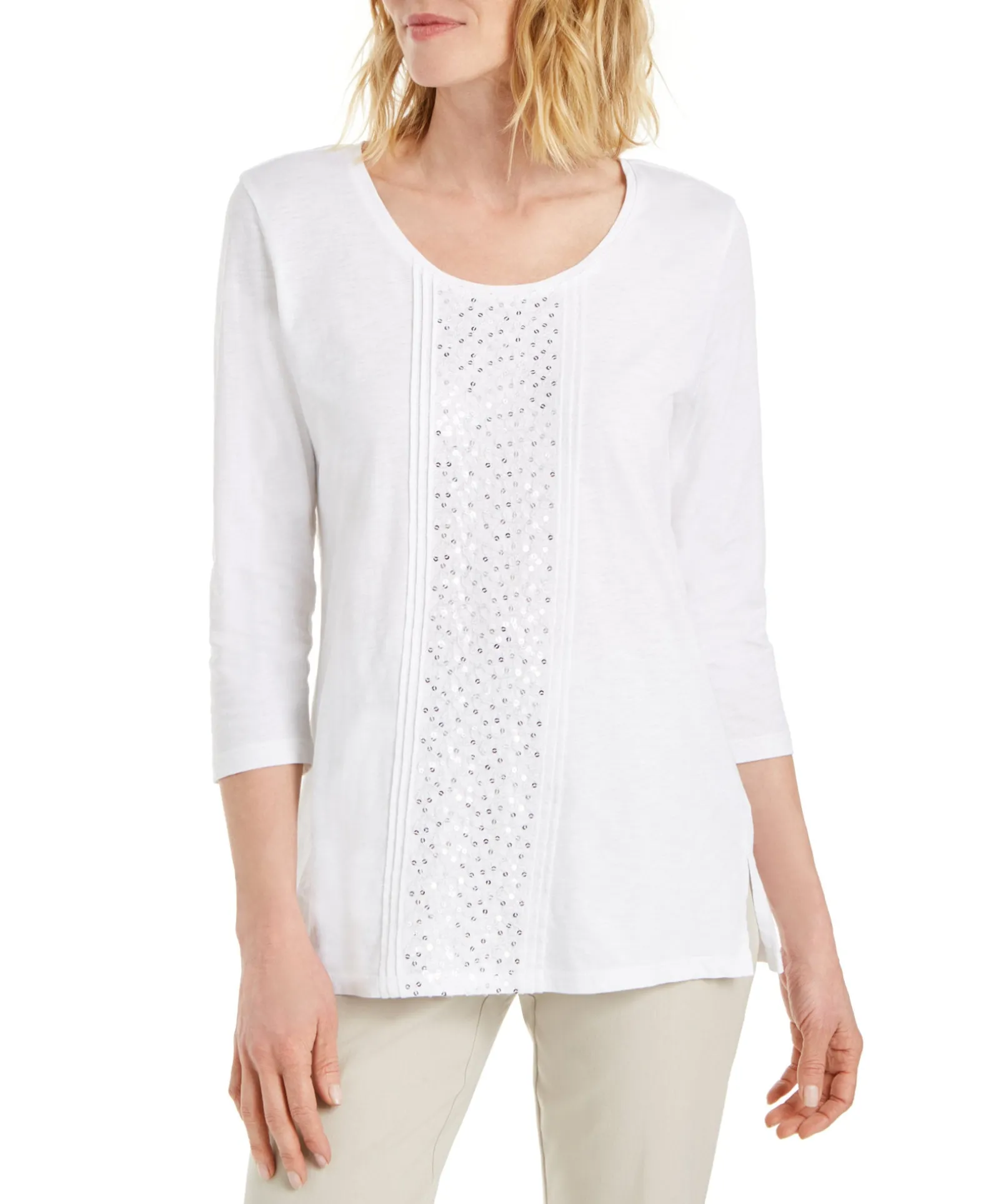 Sequined Detail Down The Center Of This JM Collection Scoop-Neck Top Adds The Perfect Touch Of Sophisticated Fun To Your Everyday Style.