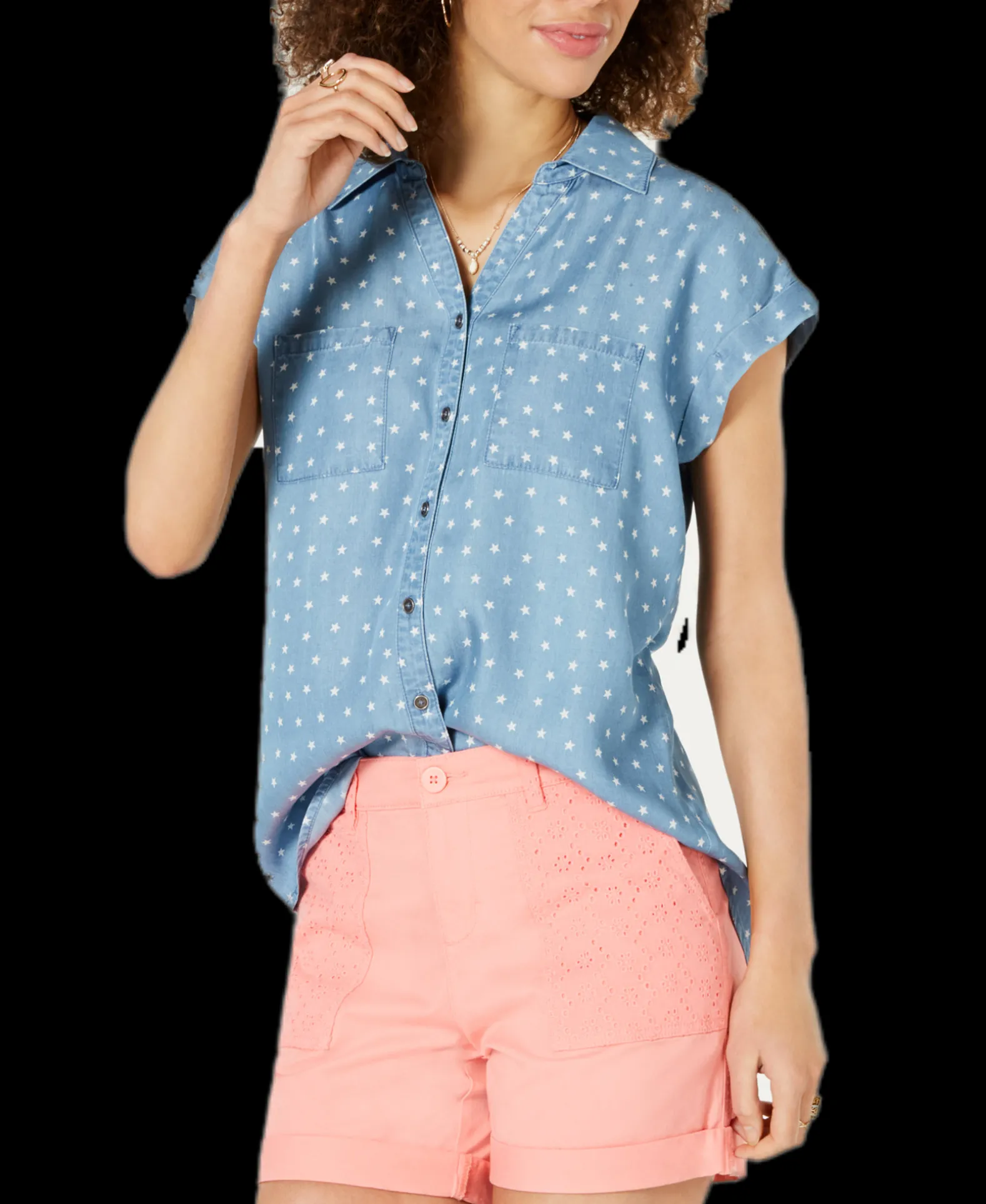 Keep it simple in a striped short-sleeve shirt from Style & Co. This relaxed-fit piece drapes beautifully and can be dressed up with a blazer if needed.