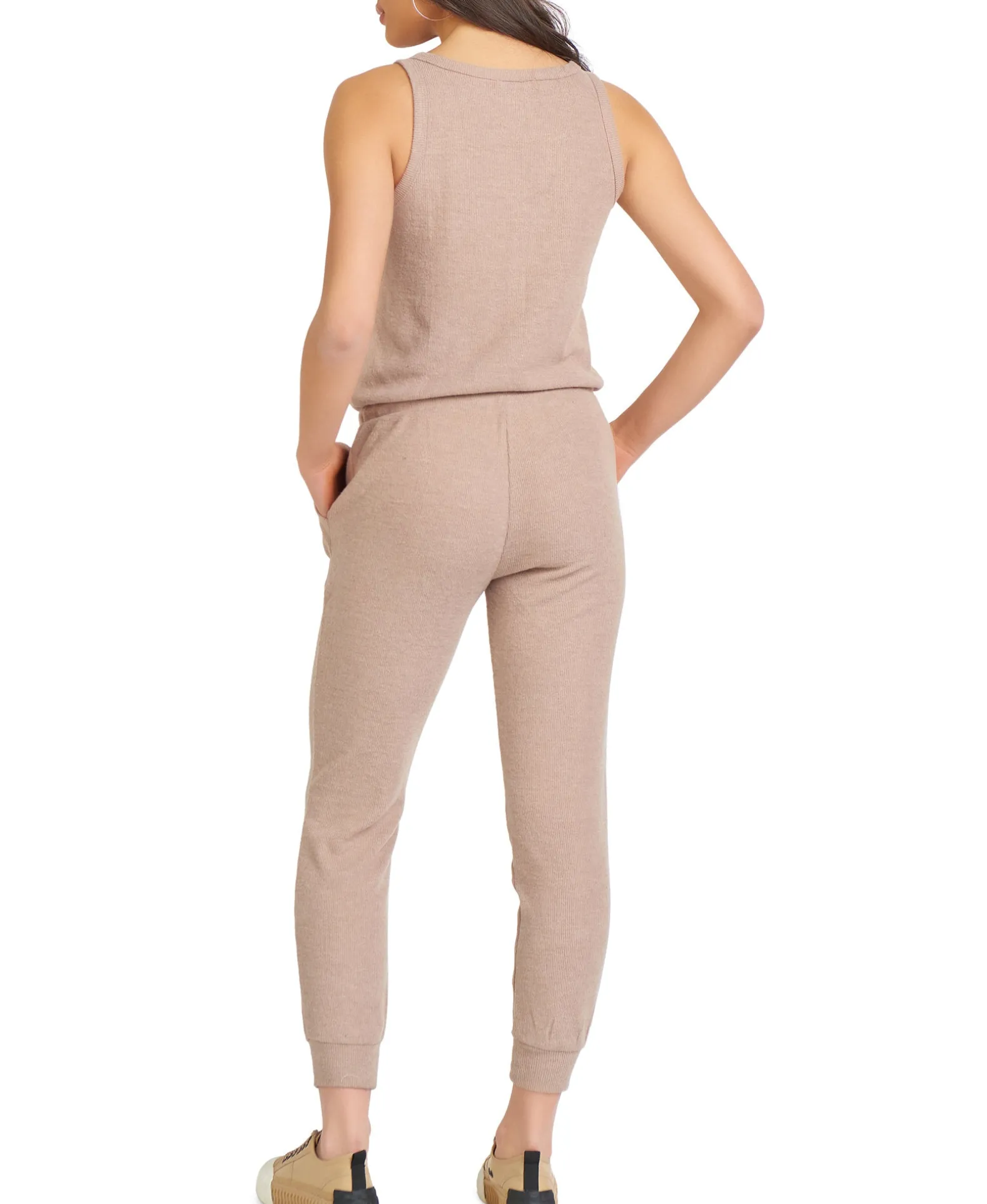 Be Effortlessly Laid-Back And Stylish In This Sleeveless Black Tape Jumpsuit. Styled With A Snap-Front Henley Neckline, The Jumpsuit Is Ultra Flattering With A Cinched Drawstring Waist.
