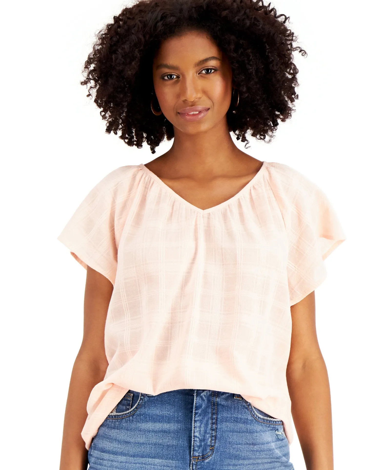 Styled With Flutter Sleeves And A V-Neckline, This Top From Style & Co Adds Sophisticated Elegance To Your Wardrobe.