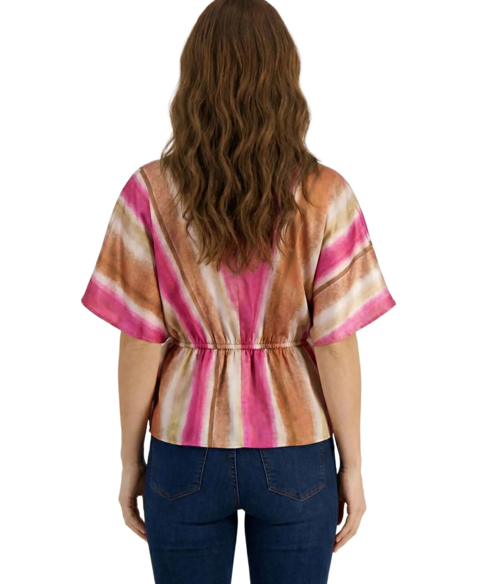 Framed By Flowing Batwing Sleeves And Finished With An Elastic Waistband For A Defined Silhouette, Alfani’s V-Neck Top Is Brightened With Bold Stripes For A Colorful Moment.