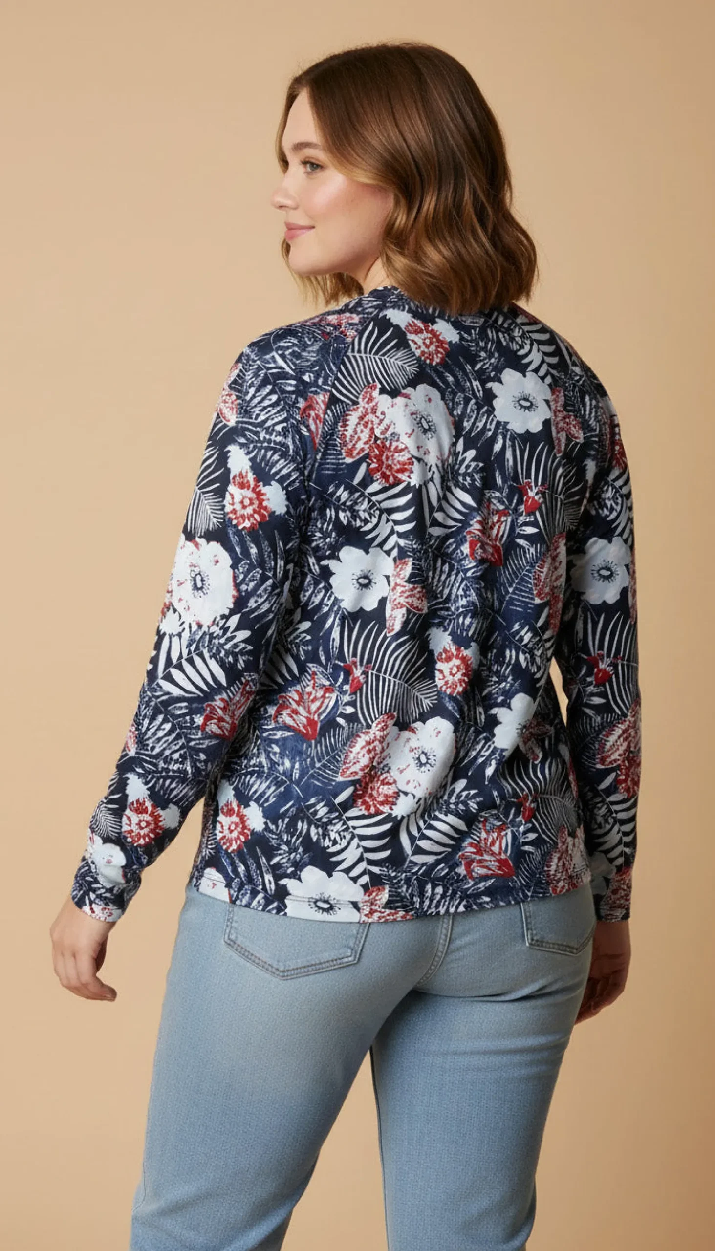 - Fitted; hits at hip; approx. 26″ long