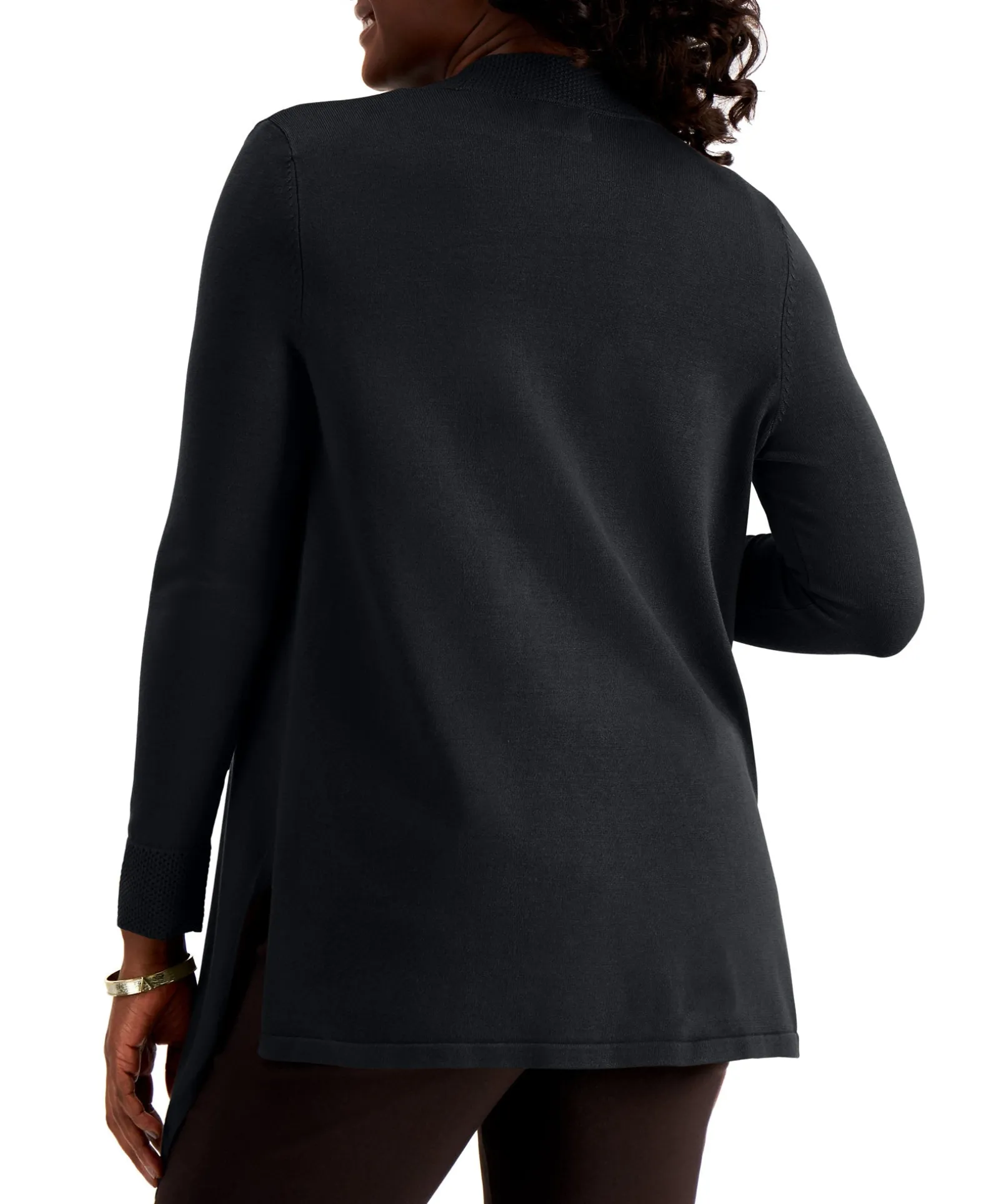 Perfectly On-Trend, This Open-Front Cardigan From JM Collection Features Long Draping In The Front.