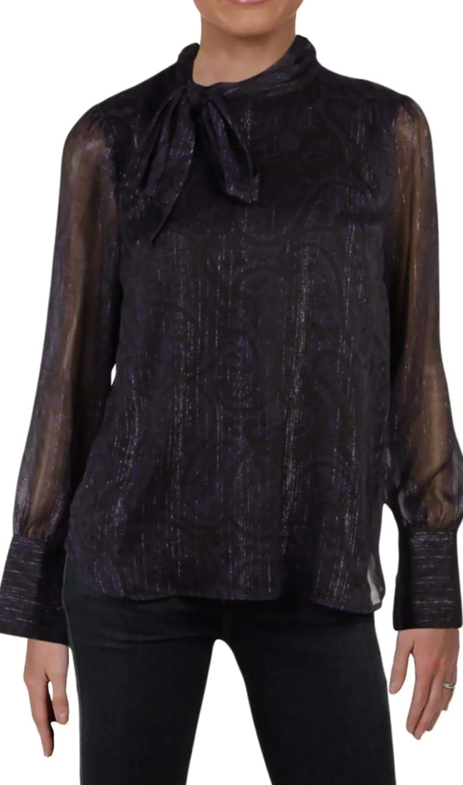 Long, sheer sleeves and neck tie lend a contemporary vibe to this fitted blouse from Michael Michael Kors.