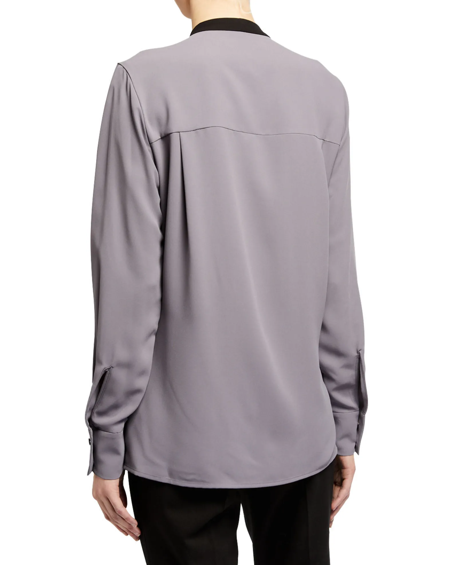 Anne Klein Puts A Feminine Spin On A Menswear-Inspired Tuxedo Blouse. This Version Features A Sophisticated Self-Tie Neckline In A Contrasting Color For Extra Panache.