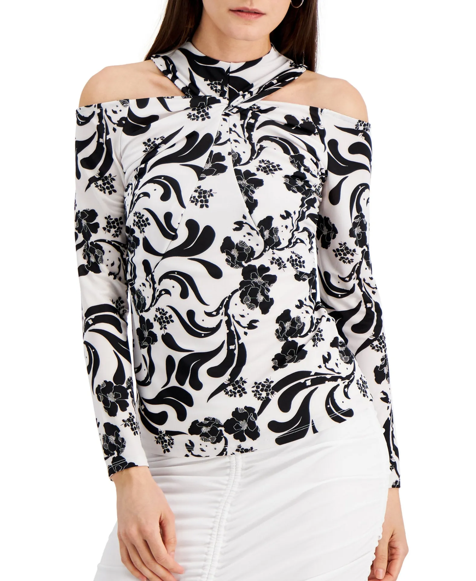 A Twisted Neckline And Chic Cold-Shoulder Cutouts Come Together Effortlessly On This Printed INC International Concepts® Top.