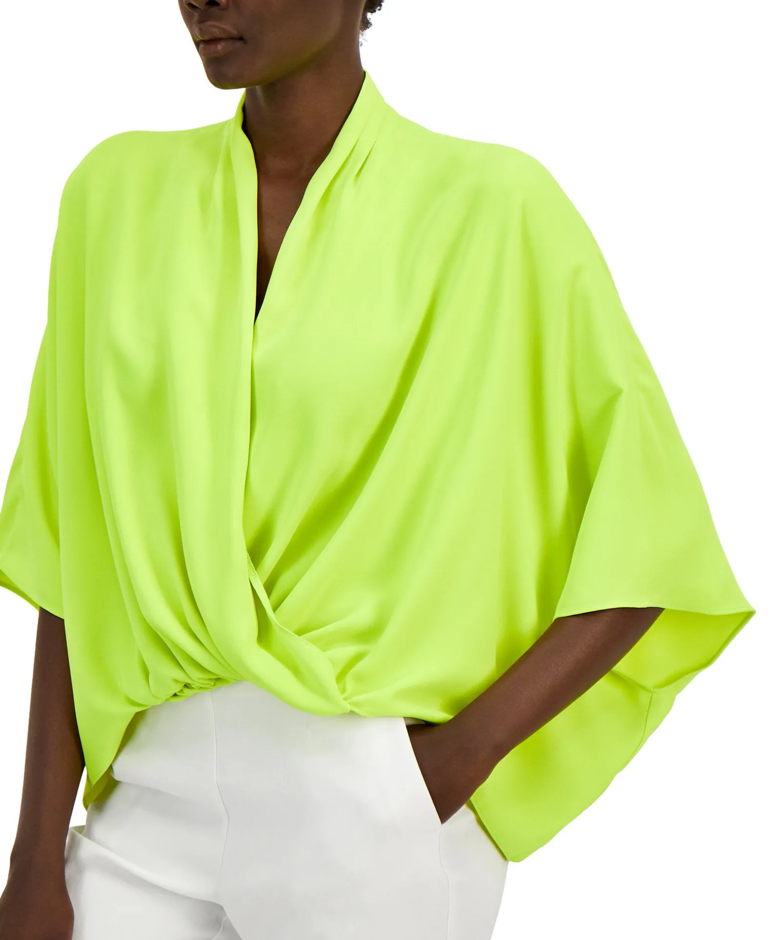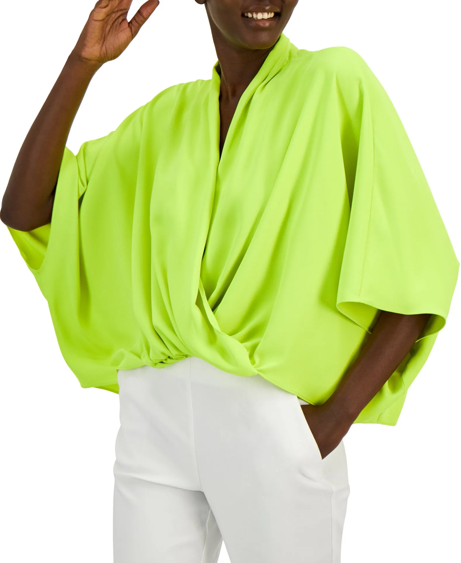 It’s All About Volume. This Striking Blouse From Alfani Features Batwing Sleeves And An Oversized Fit For A Gracefully Draped Look, While The High-Low Hem Covers In Back.
