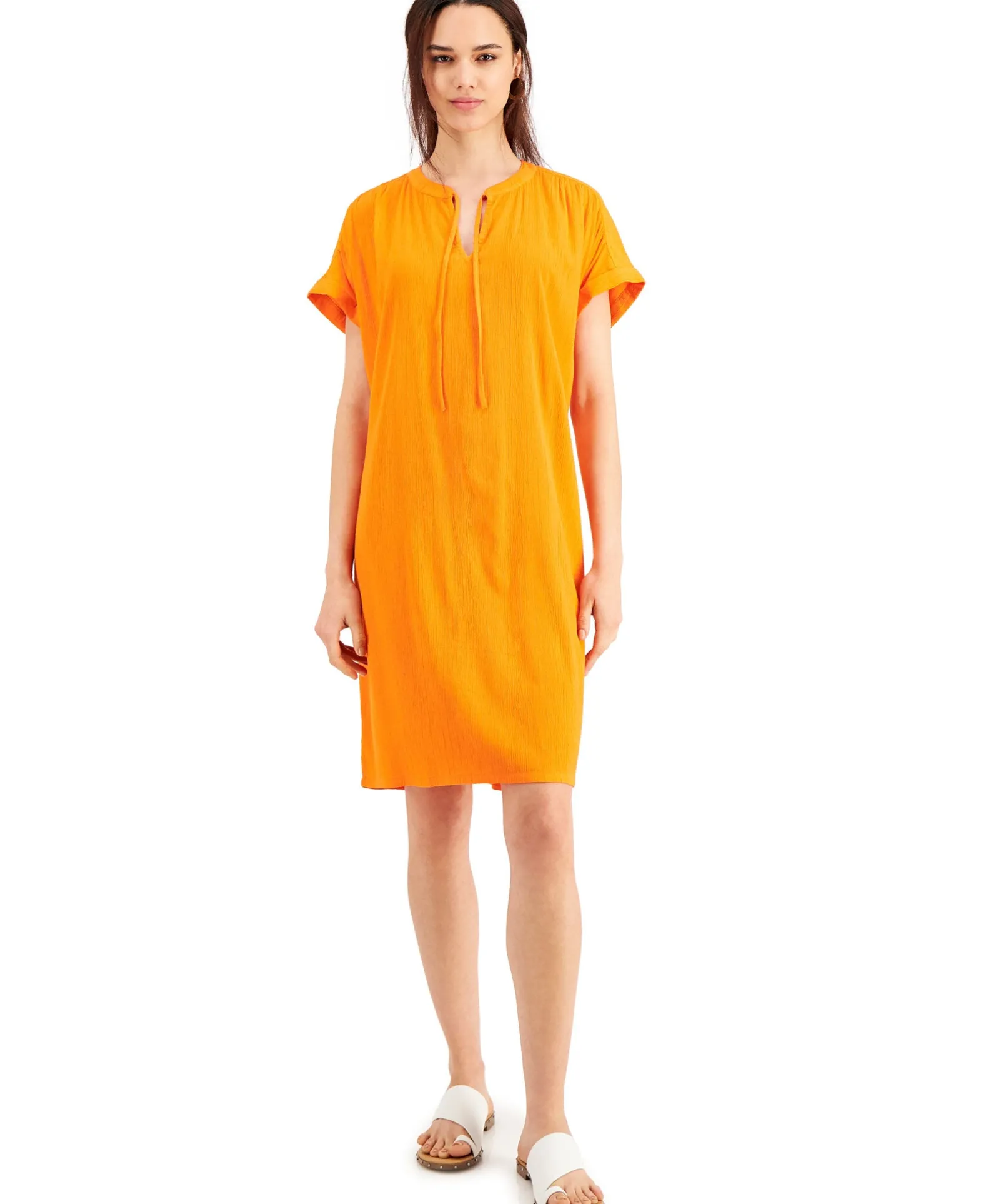 The Perfect Slip-On-And-Go Style. This Effortless Woven Dress From Style & Co Has A Perfectly Breezy Fit With Cute Ties At The Neckline.